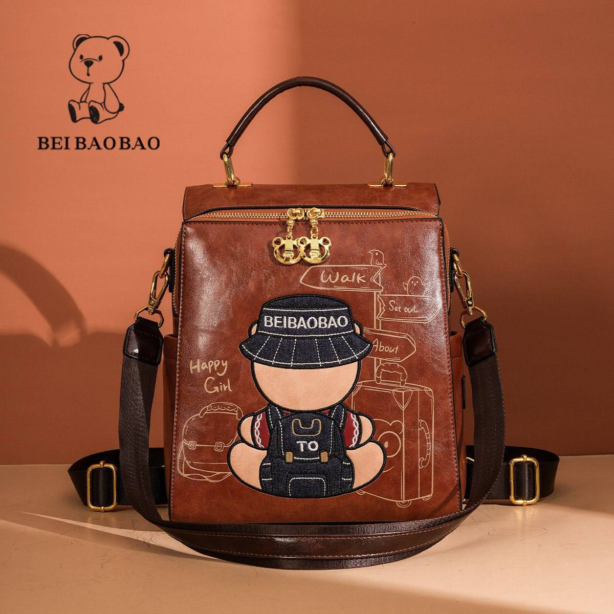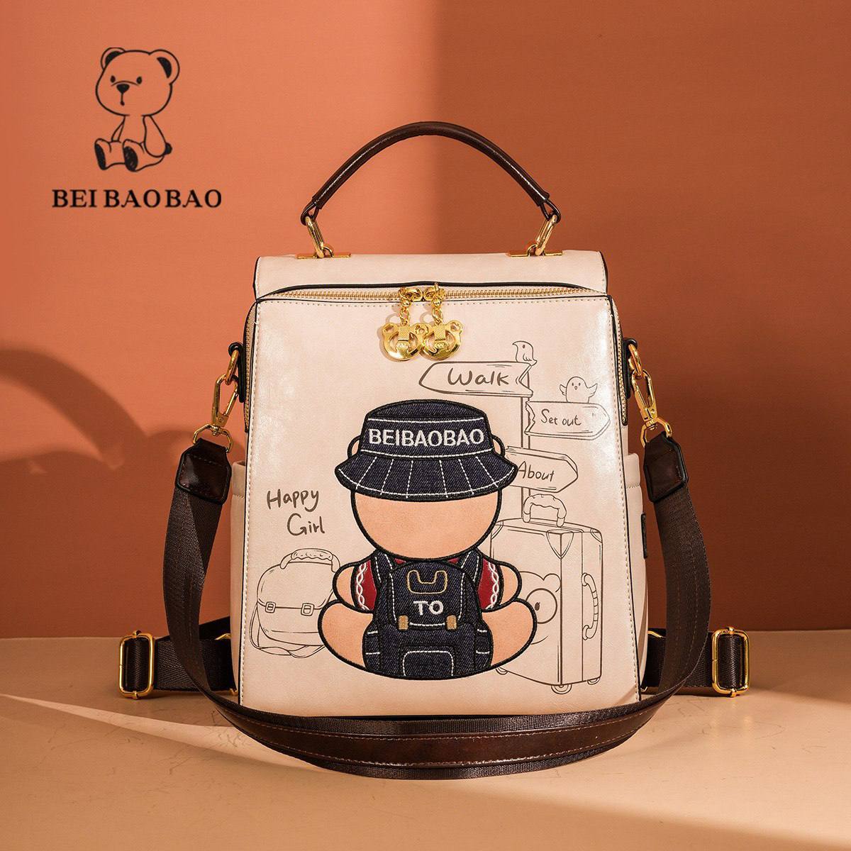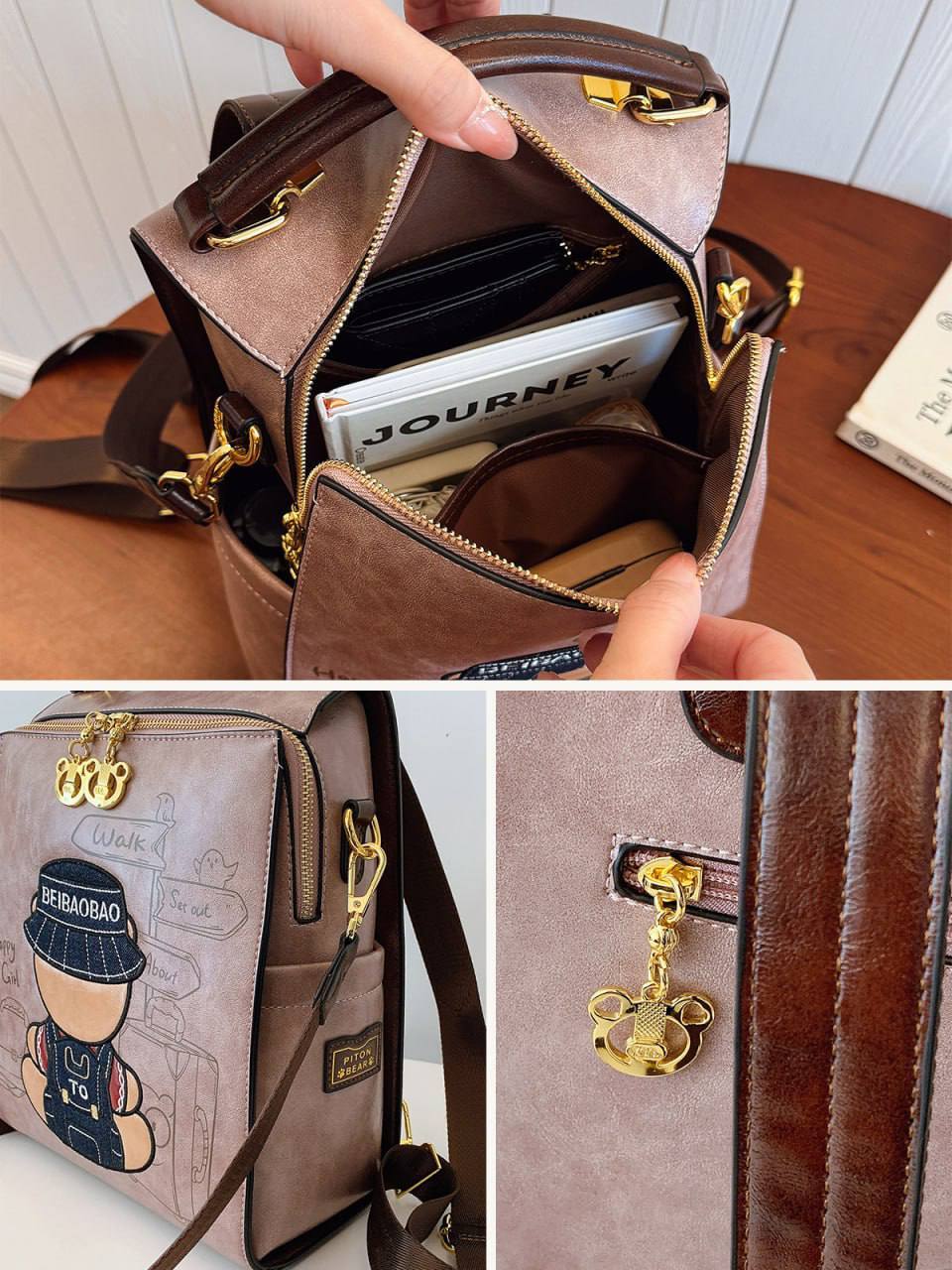 این کولهپشتی چرممانند قهوهای “BEIBAOBAO” با طرح کارتونی دختر شاد در لباس ماجراجویانه، کلاه برند و نوشتههای “Happy Girl” و “Walk About”، پر از انرژی سفر و شادی! زیپ طلایی با قفل تزئینی، دسته بالا و بندهای قابل تنظیم، استایل روزمرهات رو برای ماجراجوییهای شهری ارتقا میده. لوگوی خرسی، این اکسسوری جذاب رو بینظیر میکنه!