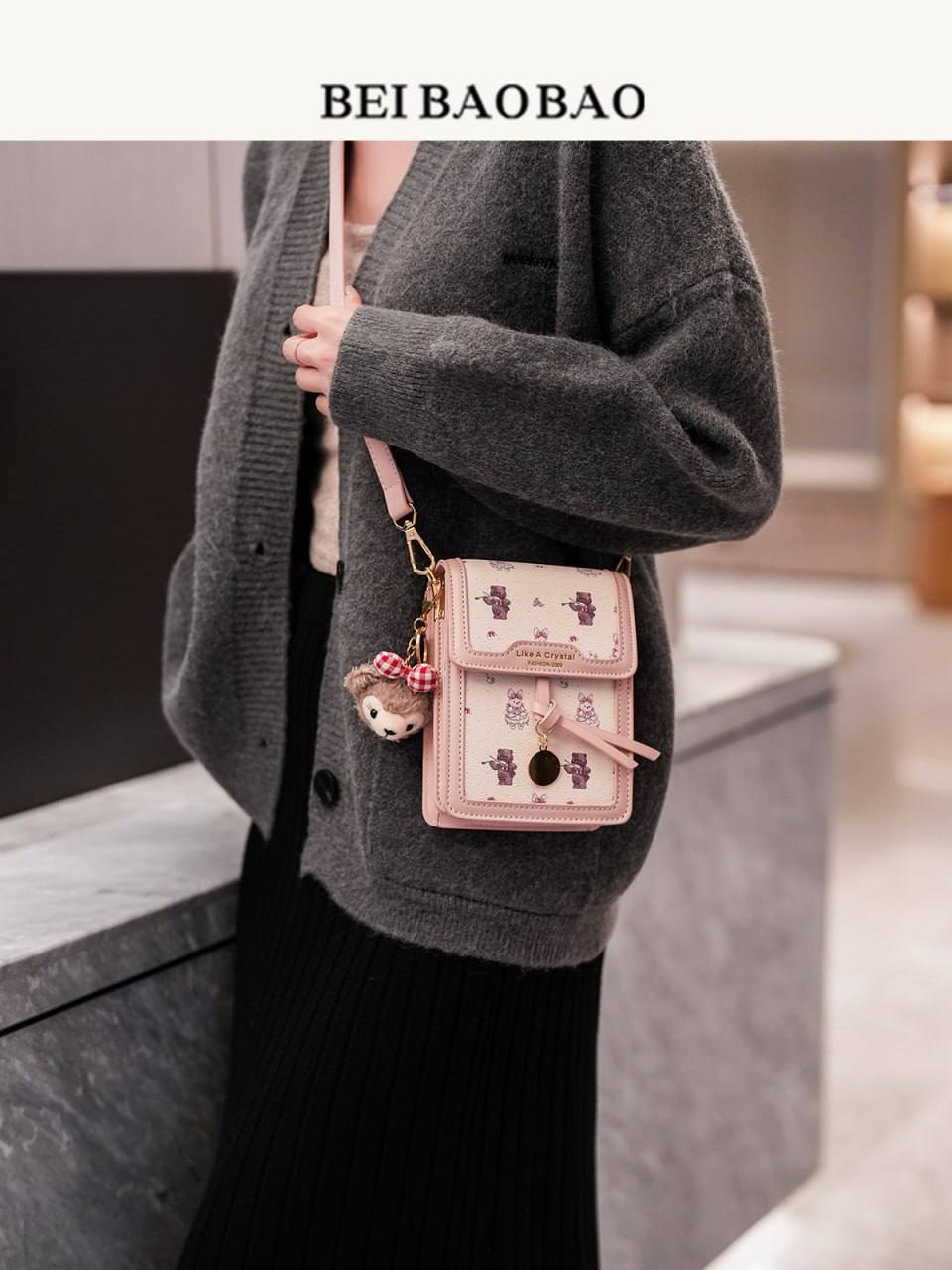 این کیف کوچک کراسبادی “BEIBAOBAO” با بدنه سفید الگودار از خرسها و خرگوشهای بامزه در حال نواختن و رقص، حاشیه صورتی ملایم و آویز خرسی پشمی با پاپیون قرمز چکدار، پر از درخشش کریستالی! متن “LIKE A CRYSTAL FASHION 2009”، زیپ طلایی با مدالیون و بند قابل تنظیم، استایل روزمرهات رو شیرین و مد روز میکنه. پلوگوی خرسی، این اکسسوری جذاب رو برای مهمانیهای کژوال بینظیر میکنه!