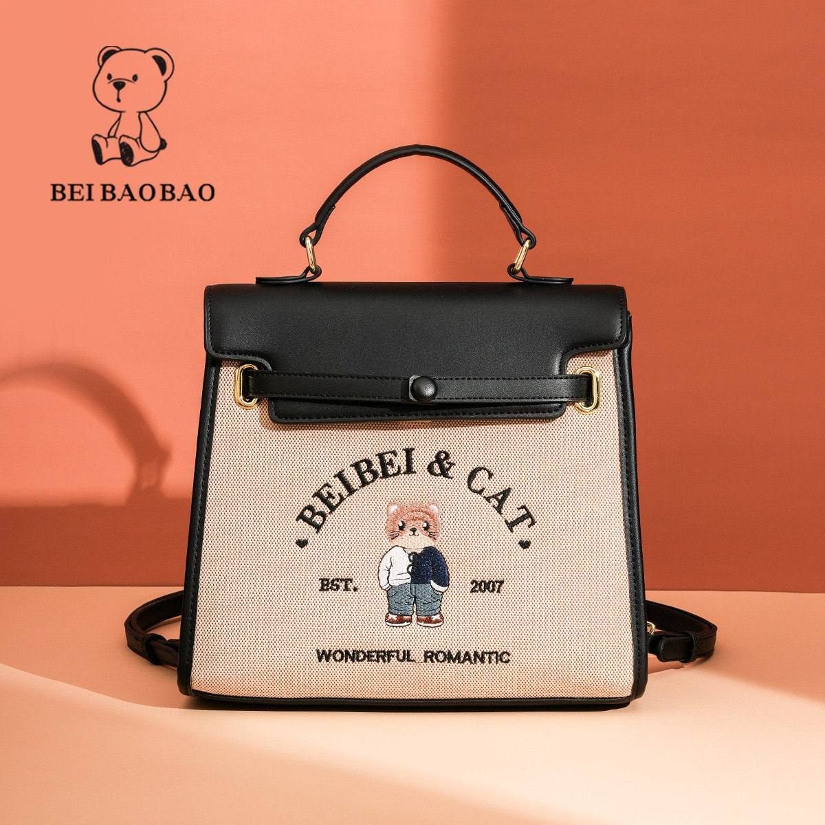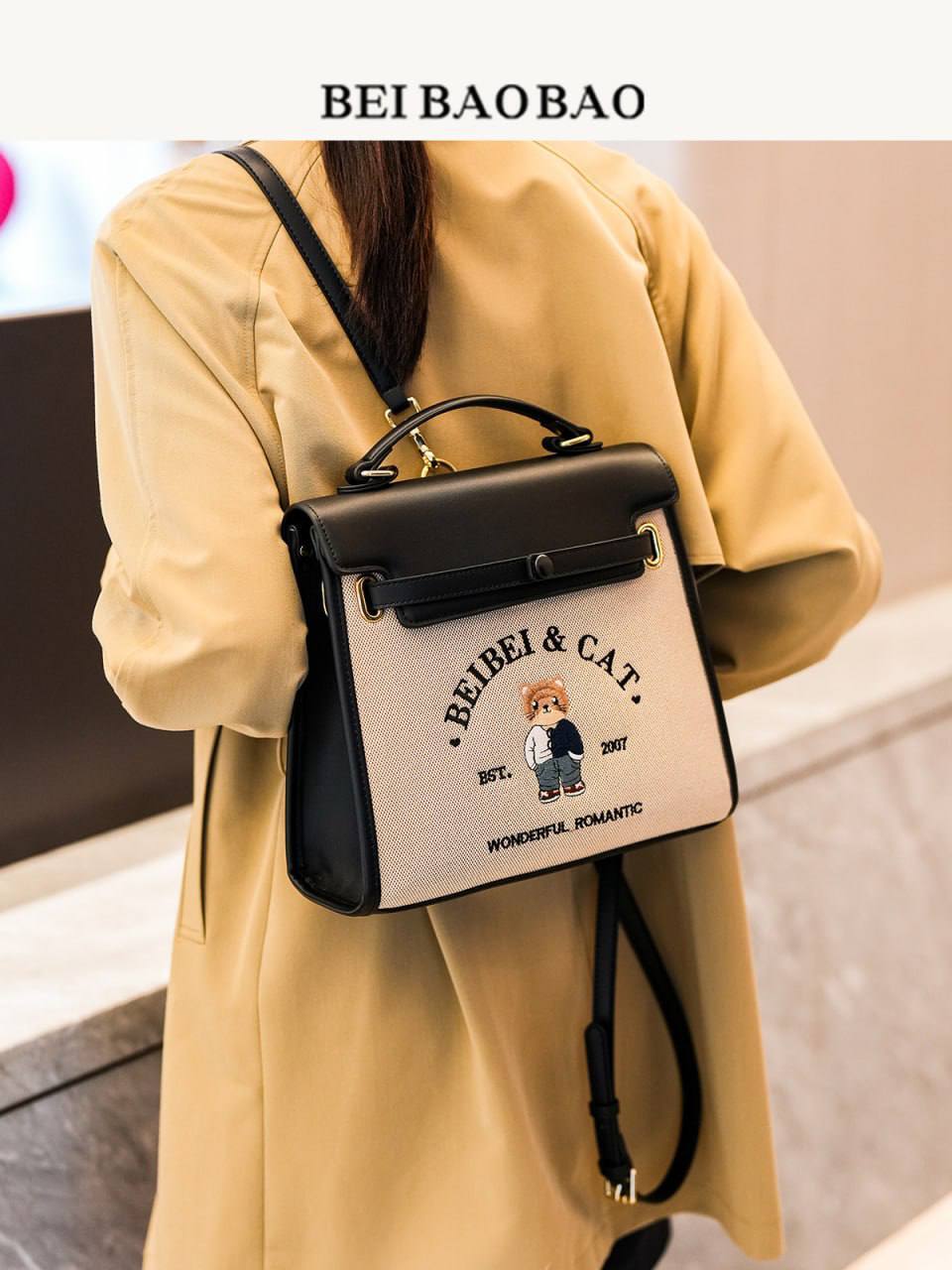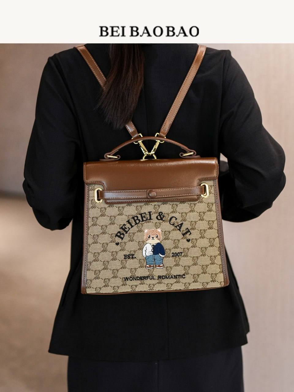 این کوله پشتی شیک “BEIBAOBAO” با الگوی مونوگرام بژ، تصویر بامزه خرس و گربه در لباسهای آبی، و متن ، ترکیبی از رمانتیک و بازیگوشی رو به نمایش میذاره! دسته و حاشیه چرم قهوهای براق با سختافزار طلایی، استایل روزمرهات رو لوکس میکنه. پسزمینه گرم هلو و لوگوی خرسی، این اکسسوری جذاب رو برای سفرهای شهری و مهمانیهای کژوال ایدهآل میکنه!